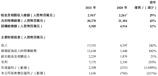 報告期內,該集團收入為人民幣175.55億元,較去年增長282%,主要由于物業(yè)銷售大幅增長。連同商業(yè)物業(yè)組合的強勢復蘇,集團轉虧為盈。股東應占溢利總額為人民幣16.36億元。