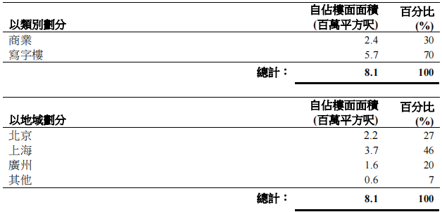 辦公樓物業(yè)方面,中國內地辦公樓物業(yè)的應占租金收入總額上升11%至8.8億港元。