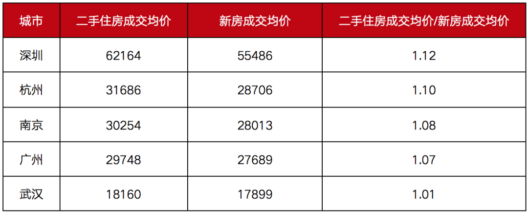 表:2020年二手住房成交均價(jià)和新房成交均價(jià)對比情況(單位:元/平方米)