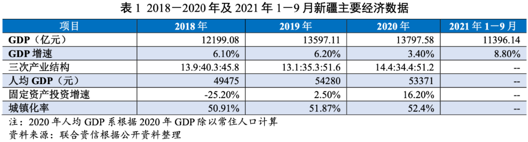 新疆地處中國西北部,戰略地位重要,資源豐富。新疆經濟總量和人均GDP位于全國中下游水平,產業結構以工業和第三產業為主。2018-2020年,新疆經濟保持增長,2020年受疫情等因素影響,GDP增速有所下降;2021年前三季度,新疆GDP同比增長8.8%。