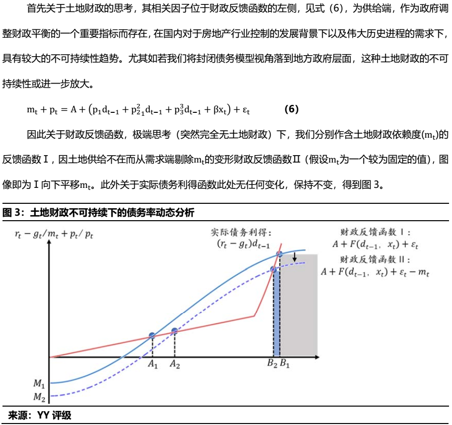此外,就國內債務的現狀,我們分別就土地財政的不可持續性趨勢和隱性債務的“灰犀?!眴栴},在模型范圍內進行定性的分析和思考,指出兩者對于整體債務和城投迫近于“明斯基時刻”存在一定的壓力導向。