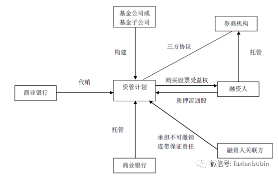 考慮到基金公司和基金子公司不能托管股票,所以開展上市公司股質業務一般采用三方監管模式,具體交易結構如下: