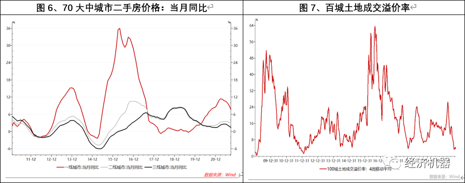 2)全國各線城市房價出現(xiàn)同步回落,土地市場遇冷,種種跡象表明,房地產(chǎn)市場或?qū)⑦M(jìn)入一個下行周期。2015年-2016年,房地產(chǎn)市場處于同步上漲階段,一線漲幅領(lǐng)先于二線,二線領(lǐng)先于三四線。2017-2020年間,各線城市之間出現(xiàn)分化。2021年下半年以來,多因素沖擊下,一二三四線房價同步出現(xiàn)回落;同時土地市場急速轉(zhuǎn)涼,土地溢價率接近于0,各地流拍現(xiàn)象不斷上升,種種跡象表明,房地產(chǎn)市場在快速轉(zhuǎn)涼,有可能進(jìn)入一個較長階段的同步下行周期。