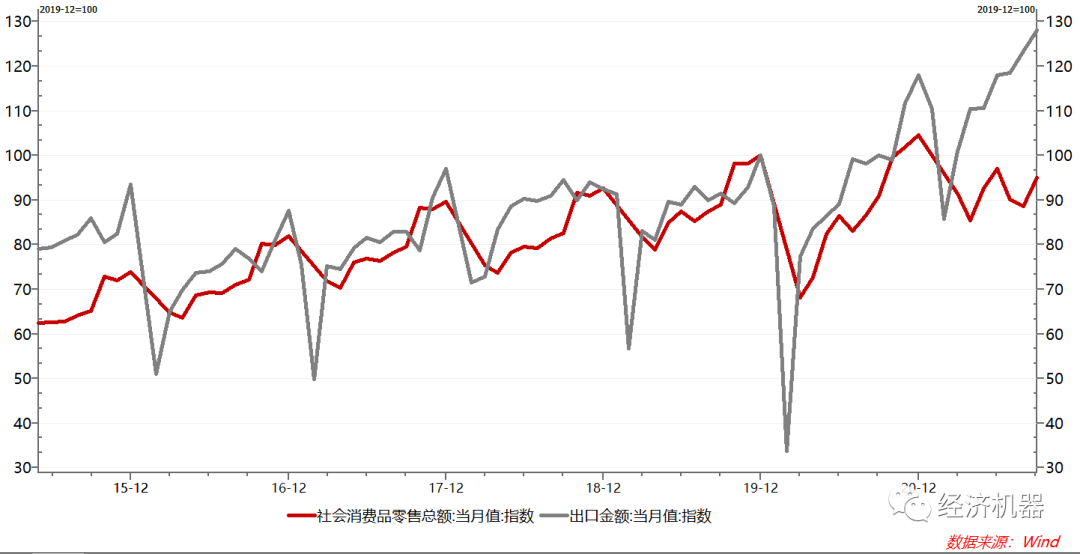 在“滯脹”前景的研判上,市場對明年經(jīng)濟(jì)出現(xiàn)周期性放緩的預(yù)期較為一致。疫情至今,外貿(mào)出口和房地產(chǎn)投資兩大動力率先復(fù)蘇,助推我國經(jīng)濟(jì)持續(xù)復(fù)蘇;而“消費(fèi)”和“固定資產(chǎn)投資(制造業(yè)和基建)”復(fù)蘇相對滯后。