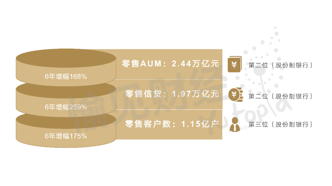 換個(gè)角度,再看發(fā)展勢(shì)能。6年前中信銀行提出零售的“四三三”戰(zhàn)略,已經(jīng)帶動(dòng)了零售基底完成了“助跑”階段,勢(shì)頭明顯:零售AUM,6年增幅168%,亦即年復(fù)合增速17%;零售客戶(hù)數(shù),6年增幅175%;零售信貸余額,6年增幅259%,年復(fù)合增速更是高達(dá)23%。