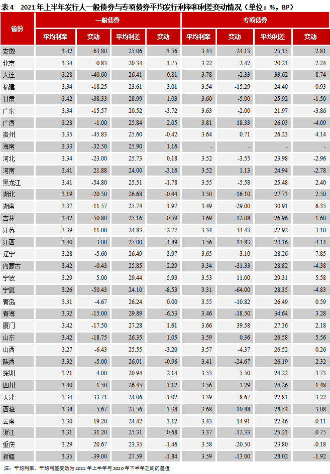 2021年上半年地方債發行利率分析