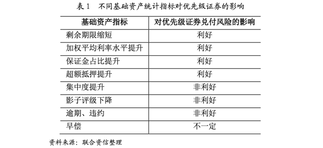 結(jié)合證券兌付情況和基礎(chǔ)資產(chǎn)表現(xiàn)情況,將基礎(chǔ)資產(chǎn)指標對優(yōu)先級證券的影響總結(jié)如下表: