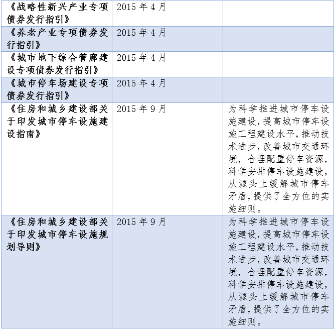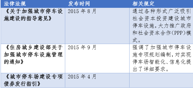 為解決共需矛盾,國家出臺了一些列主動調(diào)控的手段促進停車場產(chǎn)業(yè)的發(fā)展,鼓勵社會資本通過PPP參與立體停車項目、鼓勵發(fā)行停車場專項債,旨在通過多元化的手段來滿足日漸增長的停車需求。