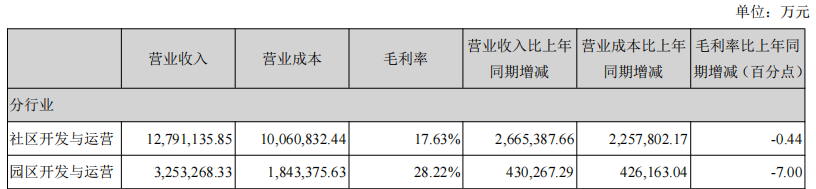 招商蛇口實現營業收入1606.43億元,同比增長23.93%。凈利潤103.72億元,同比下降15.35%。社區開發與運營毛利率為17.63%;園區開發與運營毛利率降至28.22%。