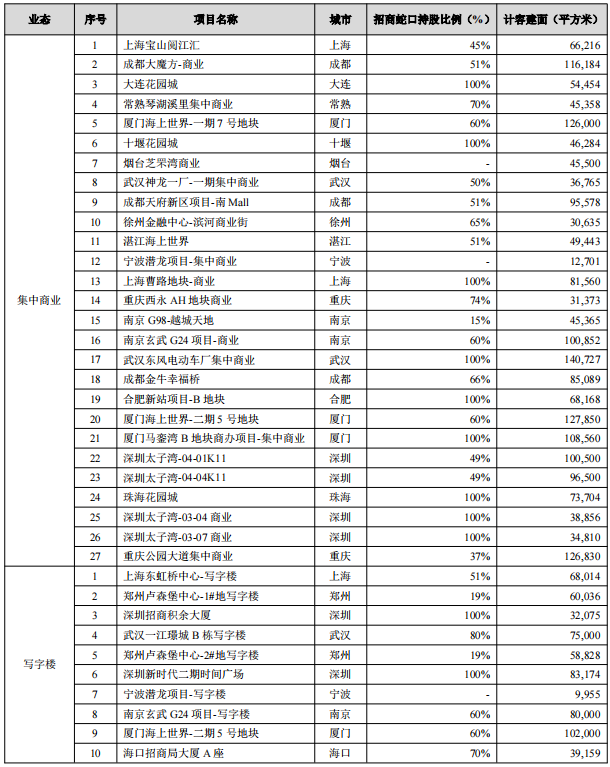 商業方面,報告期內,招商蛇口積極推動集中商業項目拓展,年內獲取4宗集中商業項目,位于上海、南京、成都和廈門核心地段,均為地鐵上蓋物業,對應集中商業體量為43萬平方米,平均單項目商業體量11萬平方米;獲取輕資產項目3 個,分別為煙臺芝罘灣廣場合資委托管理項目、寧波潛龍合資委托管理項目以及攀枝花三線文旅廣場前策服務項目。