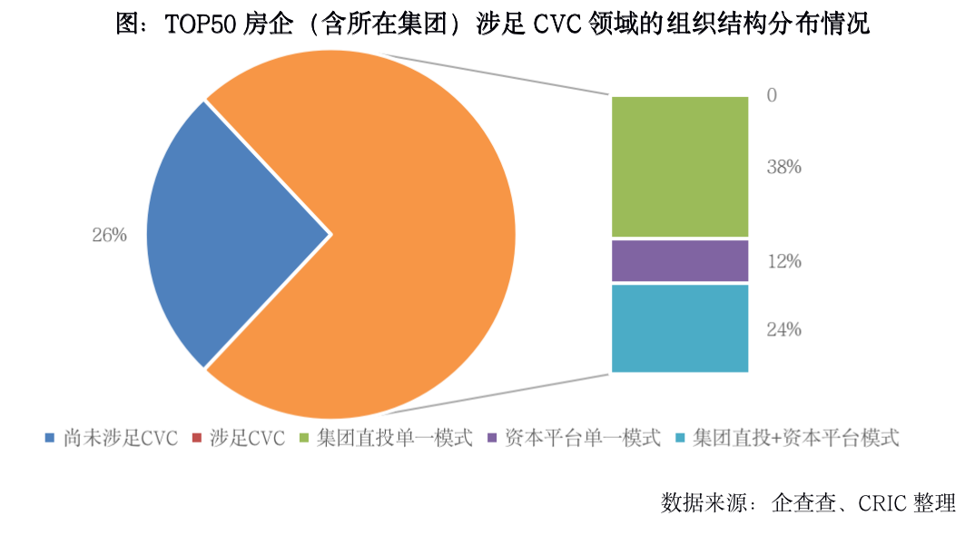 2、房企參與CVC模式各異,TOP50中約4成已設立資本平臺