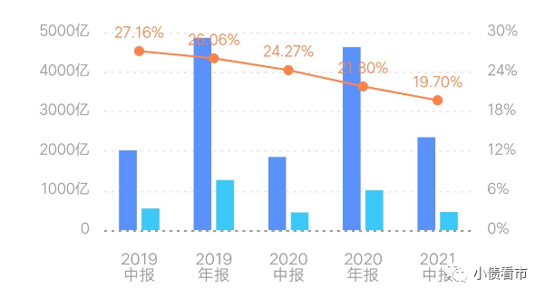 值得注意的是,碧桂園本就不高的毛利率,近年來持續(xù)走低,2021年上半年其毛利率和凈利率分別為19.7%和9.54%,盈利能力欠佳。