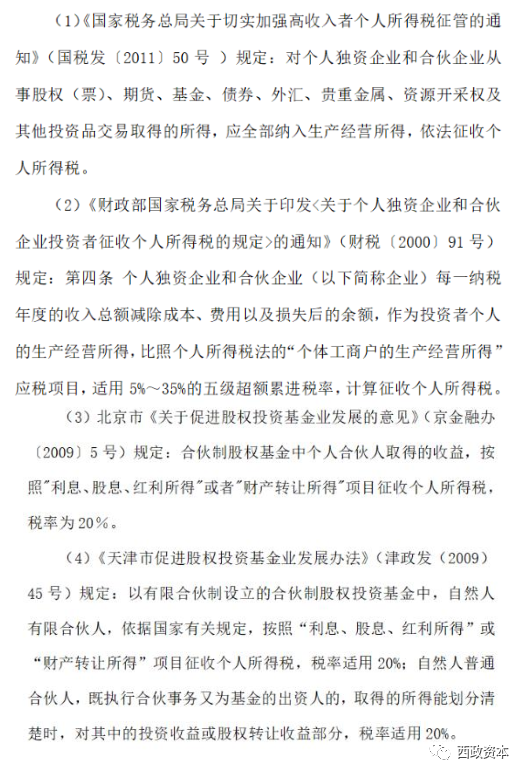 關(guān)于地區(qū)性差異的產(chǎn)生原因,筆者認(rèn)為主要是當(dāng)前合伙企業(yè)個人投資者的所得稅在法規(guī)政策的規(guī)定方面相對模糊,且大多以國稅總局規(guī)范性文件為主,效力層次相對較低,由此導(dǎo)致地方政府擁有較大的自由裁量權(quán)。