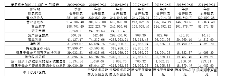 公司在2018年由于并購造成巨額的商譽減值和被并購子公司的的巨額虧損,導致上市公司合并報表中歸母凈利潤虧損31.5億之多,但是,上市公司的主業依然保持較強的增長勢頭,康尼機電是一家研發和技術驅動的公司,招股說明書上顯示:2011-2013年,公司每年用于技術研發的投入超過銷售收入的6%,公司上市之后每年在研發投入超過銷售額的7%,2014年7.22%,2015年7.8%,2016年8.4%,2017年7.65%,2018年7.24%,2019年7.12%,即便是在2018年因為并購導致上市公司巨虧的情況下,公司依然進行較大額度的研發投入,現在的投入決定了公司的未來,目前公司已經在軌道交通門領域取得了比較明顯的優勢,持續的研發投入,會繼續加深加寬企業的護城河。2019年,2020年營業利潤持續增長。上市公司母體的原有業務的基本面依舊保持強勁增長。