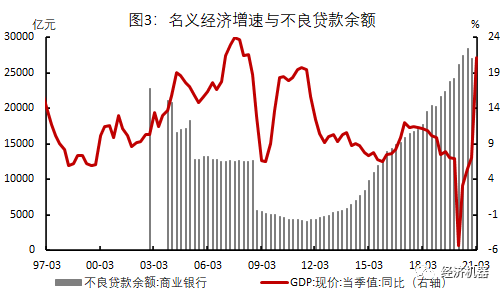 中外無數案例表明,經濟增長與減債力度節奏之間關系處理得好,宏觀杠桿率就能穩住甚至下降;反之,盲目舉債刺激增長,或者勒緊褲腰帶緊縮犧牲增長,都會導致去杠桿的失敗。20世紀90年代的日本和21世紀初的希臘,都因為過于注重緊縮而導致經濟衰退,從而使去杠桿進程遭遇失敗。反之,中國在1998年期間積極擴大內需,刺激三駕馬車,全力保增長,使經濟從1993~1998年的整頓和衰退中迅速走出來,開始了新一輪經濟景氣周期;同時積極進行改革,擴大開放,包括外匯儲備注資和剝離壞賬,國企改革和積極加入WTO等。結構層面,改革開放動作有效釋放了增長潛力;總量層面,總需求不斷擴大,反通縮取得決定性勝利。兩者共振,使一度“資不抵債”的國有大行在壞賬絕對水平和壞賬率兩方面,均出現了明顯下降(圖3),成為了去杠桿的典范。