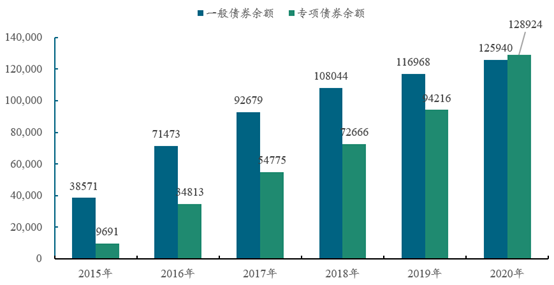 此外,如果我們再看財政支出來看,同樣以4本賬衡量的支出規(guī)模2020年在44.50萬億(同樣會有重復(fù)加總的問題),剔除掉重復(fù)的部分,簡單來看赤字規(guī)模也在4-5萬億體量。