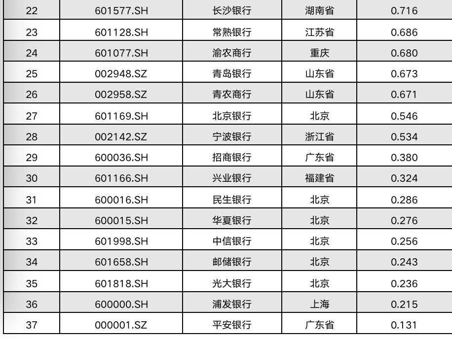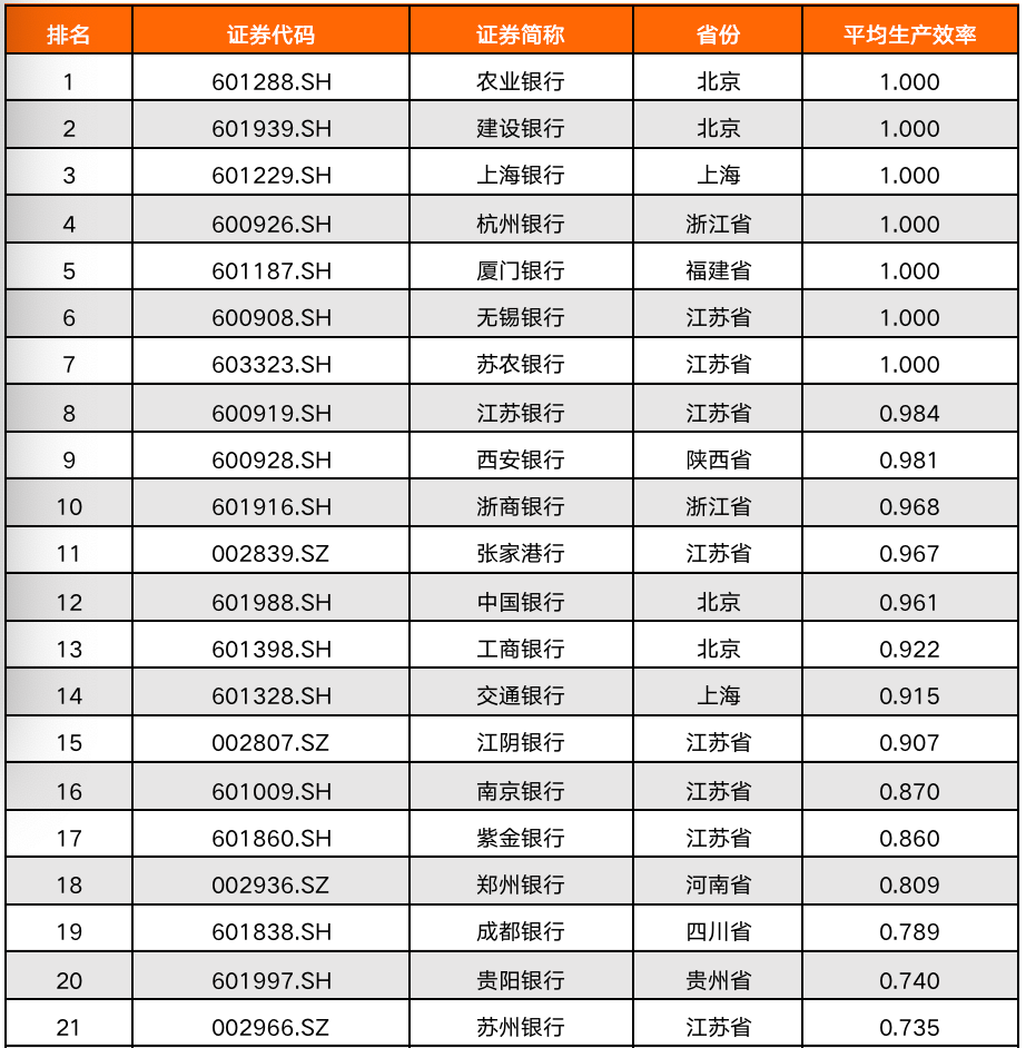 原標題: 上市商業銀行生產效率:農行、建行等排名第一
