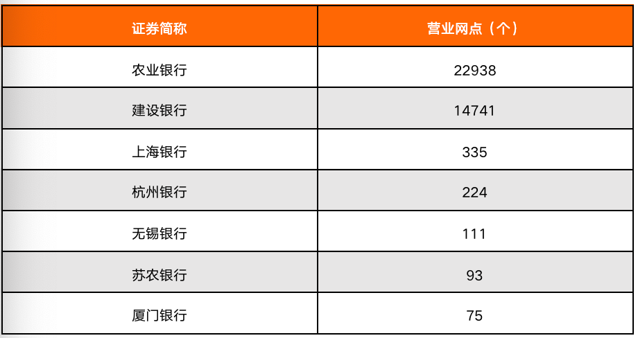 營業網點個數在一定水平上能反映出商業銀行的資本投入水平。農業銀行有22938個營業網點,建設銀行有14741個營業網點;城市商業銀行和農村商業銀行由于地域限制,能夠設立的營業網點數量有限,其中,營業網點數量最少的是廈門銀行,僅有75個。