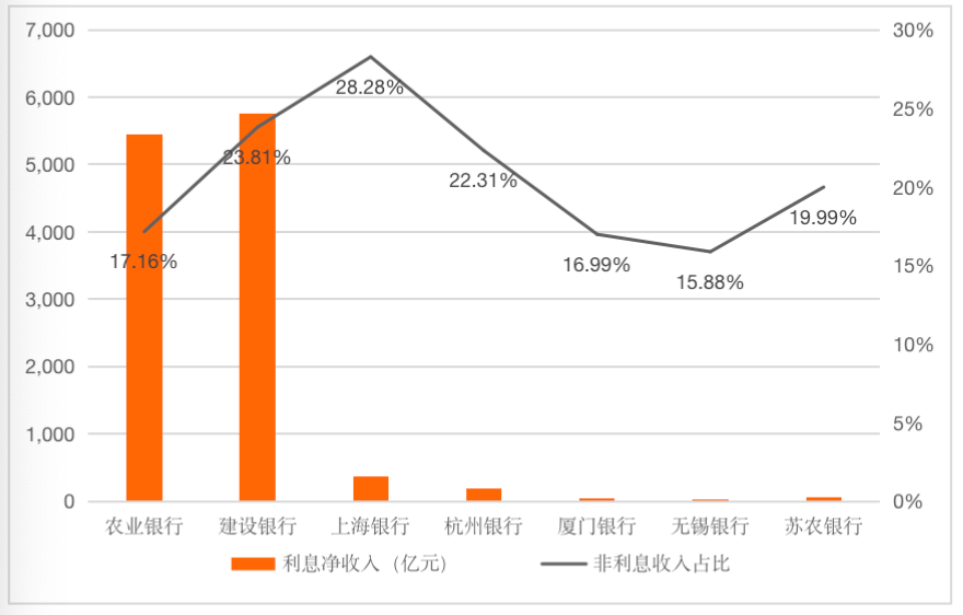 (五)建設銀行利息凈收入最高,上海銀行非利息收入占比最高