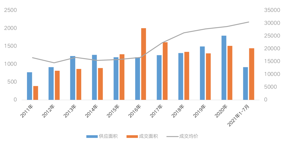 圖:2011年-2021年1~7月杭州商品住宅
