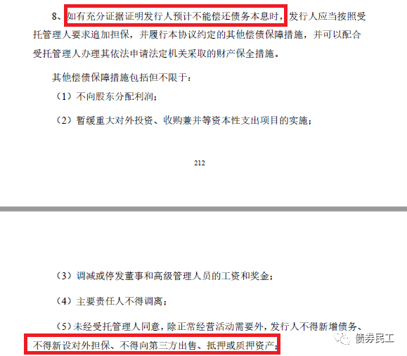 債券民工查閱了一下華晨集團近期性的的債券募集說明書,其中海通證券作為主承銷商的20華集01和中金公司作為主承銷商的19華集01在募集說明書,在第五節增信機制、償債計劃及其他保障措施對華晨集團債券存續期中資產抵押事項進行了明確規定(見下圖,以20華集01募書為例)。從募集說明書的這部分內容分析,華晨集團直接違反了對投資者的承諾。