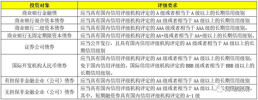 2012年7月16日保監會發布的《保險資金投資債券暫行辦法》(保監發〔2012〕58號)和2019年1月25日銀保監會發布的《關于保險資金投資銀行資本補充債券有關事項的通知》明確了保險資金投資債券時有評級方面的要求。可以看出,對非金融企業債券來說,評級至少應為AA級(短融可為A-1級)。