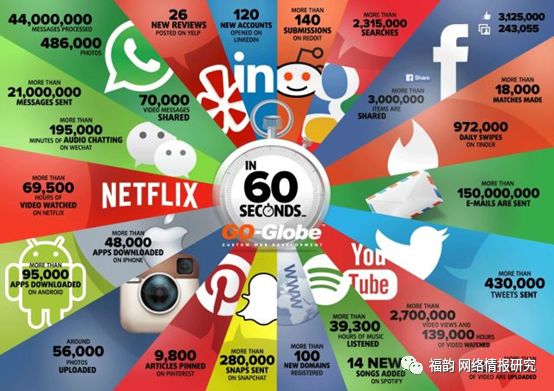 圖為某機構統計的一分鐘內各平臺涌現的數據量