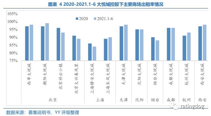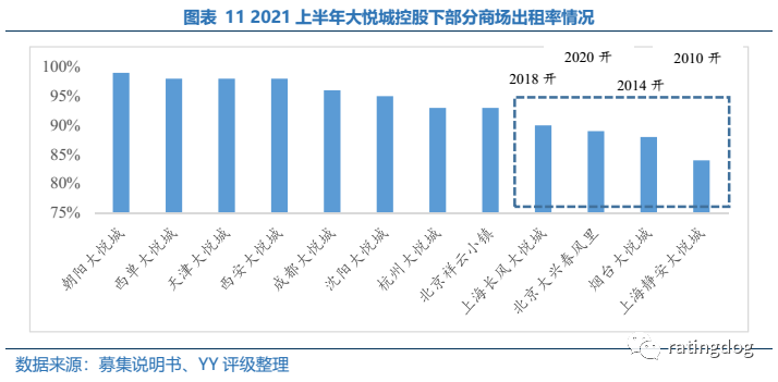 整體來看,大悅城具有良好的股東背景和明確的集團內部定位,商業物業與住宅業務并舉,其中商業項目整體出租率良好,有一定品牌效應,而住宅業務也展現了一定的銷售韌性;以銀行貸款為主的債務結構良好,短期信用風險傳染可能性較低。