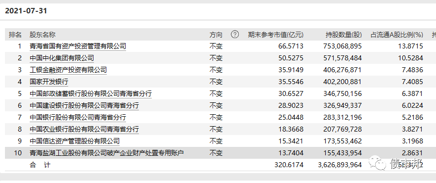 從最新披露的鹽湖股份的股東來看,確實除了工銀投資外,不見其他債轉股公司身影,某大行債轉股公司在2017年宣傳的200億元鹽湖股份債轉股簽約,現在看原來是空頭支票。鹽湖股份股東名單里的XX銀行XX分行,都是被迫轉股的銀行債權。