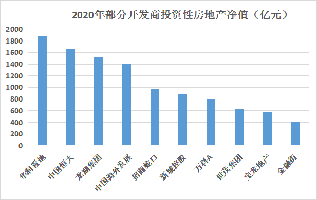 TOP50開發(fā)商2020年投資性房地產(chǎn)凈值合計約為1.6萬億元,其中,投資性房地產(chǎn)凈值規(guī)模前三位分別為華潤置地1873億元、中國恒大1658億元、龍湖集團1524億元,前十位規(guī)模合計約為1.07萬億元,占TOP50開發(fā)商合計規(guī)模的66.87%。35家開發(fā)商持有物業(yè)規(guī)模在100億元以上,成為不動產(chǎn)市場的最大業(yè)主方。