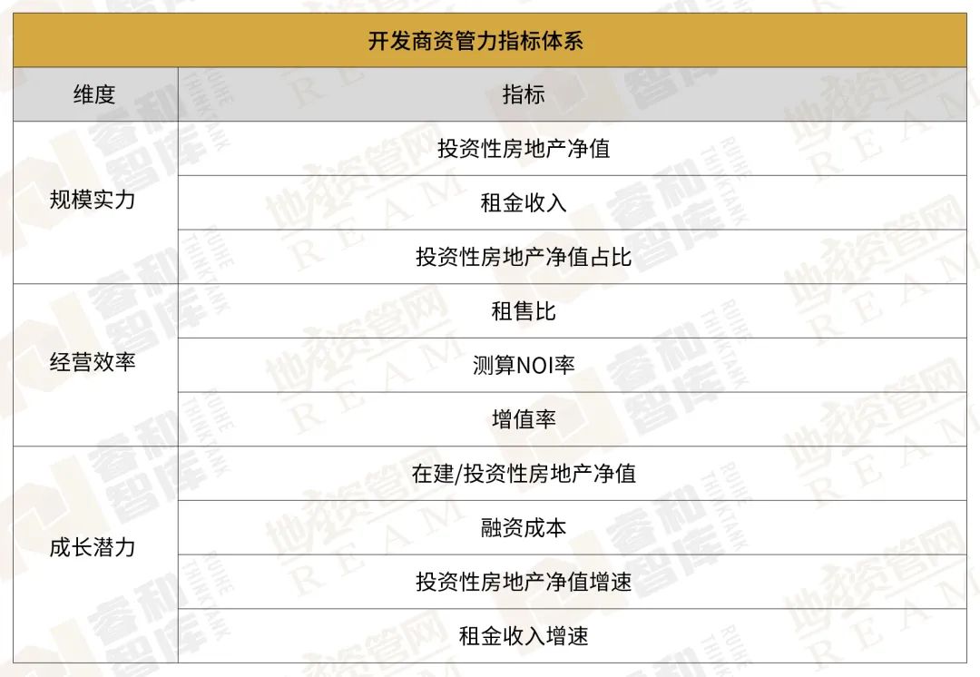 睿和智庫長期對開發(fā)商的投資物業(yè)規(guī)模、運營效率、未來的發(fā)展?jié)摿Φ确矫孢M行量化研究,發(fā)掘具有較強資管力的開發(fā)商,發(fā)揮這些開發(fā)商的示范效應,以推動行業(yè)的轉型發(fā)展。
