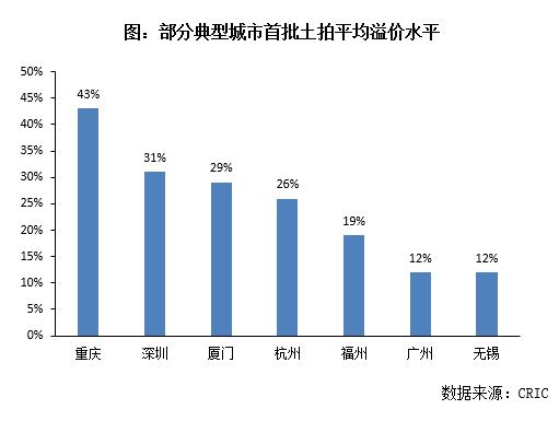 4月底以來,首批集中供地逐步進(jìn)入高峰期,目前22城中已有過半城市完成首批土拍。從競(jìng)拍情況來看,在北京、深圳、杭州、重慶等熱點(diǎn)城市,地塊競(jìng)爭(zhēng)尤為激烈,多數(shù)房企不惜犧牲利潤(rùn)拿到目標(biāo)地塊。