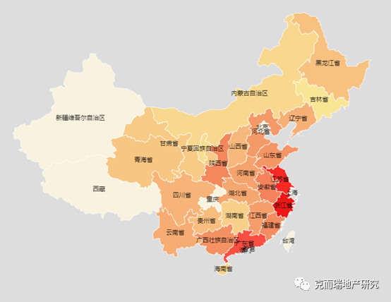 備注:顏色越深代表投資熱度越高,此圖僅監(jiān)測TOP50房企投資省份(不含港澳臺三地)