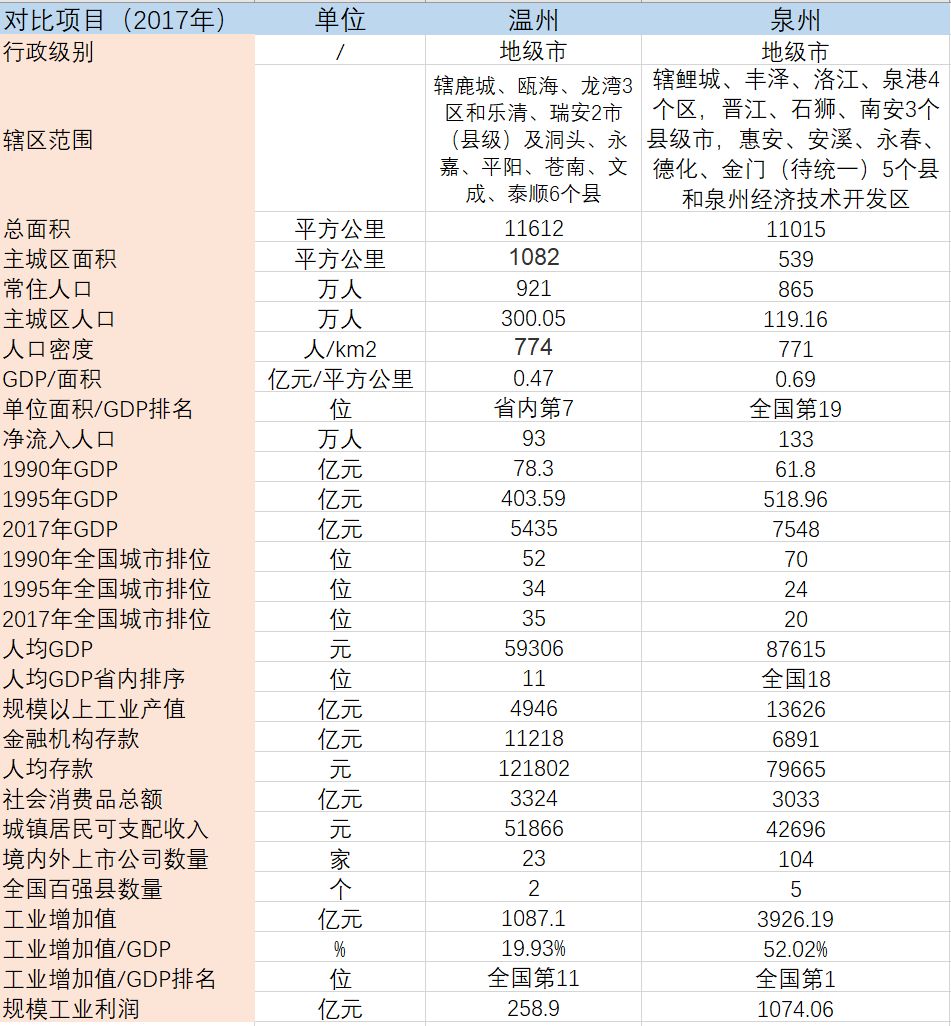 從地理位置上說泉州北有省會福州,南有特區/計劃單列市/副省級等各類資源加持的廈門,夾縫中求生存的泉州只是一個連一把手都不是省委常委的地級市,各方面都凸顯先天不足。先看人口,城市總面積與總人口兩地相當,但是主城區面積泉州僅為溫州的49.81%;泉州城區人口約119萬人,為溫州的40%。119萬人是什么概念?都達不到通一條城市輕軌150萬人的要求。