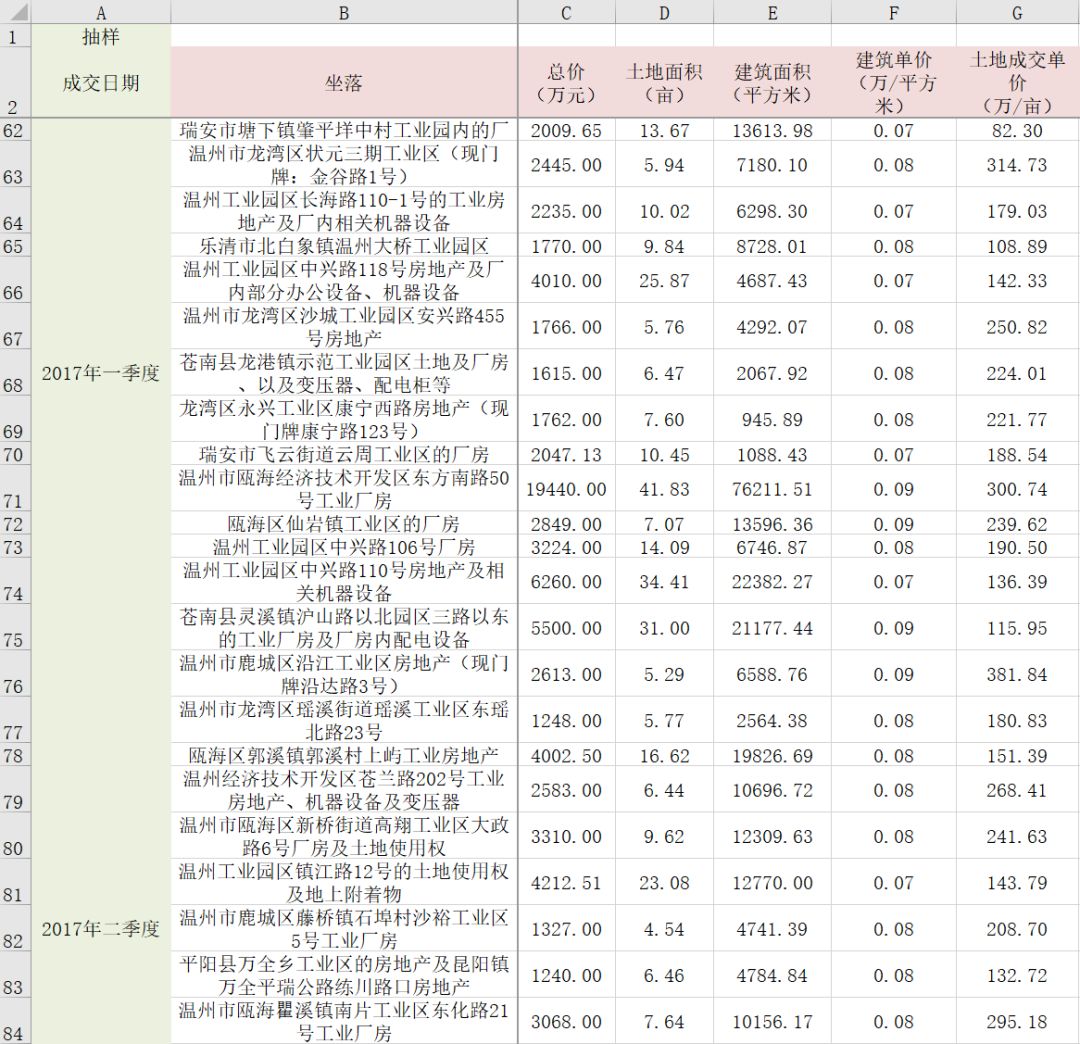 表3 部分溫州成交工業地價抽樣(數據來源淘寶司法拍賣,由后稷投資評估部匯總整理)