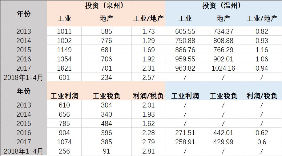第三,如表5,2017年當溫州的利潤/稅負比僅僅只有0.6時,泉州已經高達2.79,高了將近5倍。泉州是一個不斷給工業減稅的良心城市,政府對工業大力扶持的決心確實造成了泉州工業的輝煌。但從另一個角度來看,雖然2017年規模以上工業產值中泉州1.36萬億,溫州4946億;泉州有將近2000多家銷售額超億元的企業,但你找不到一家巨無霸級別企業。實際上,泉州近年來不少中小制造業企業倒下,大企業總部外遷,現代服務業尚未形成氣候,單一的傳統制造業,企業經營的現實情況并沒有數據看起來那么靚麗。
