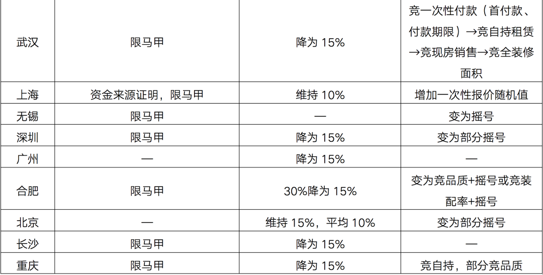 基于此,8月10日自然資源部召開閉門會議,要求集中供地城市優化第二批次土地出讓政策,隨后,各大城市臨時中止土拍,紛紛調整土拍規則,只要涉及三大方面: