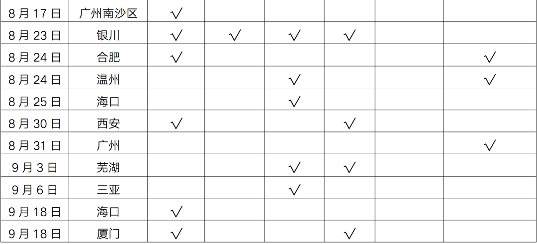表:2021年三季度政策加碼城市