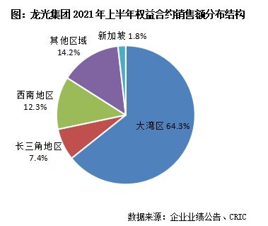 【繼續(xù)保持穩(wěn)健增勢(shì),長(zhǎng)三角業(yè)績(jī)同比增長(zhǎng)214.6%】2021年上半年,龍光累計(jì)實(shí)現(xiàn)權(quán)益銷(xiāo)售額736.4億元、權(quán)益銷(xiāo)售面積390.5萬(wàn)平方米,分別同比增長(zhǎng)58.9%、28.3%,業(yè)績(jī)目標(biāo)完成率達(dá)到50.8%。其中大灣區(qū)作為業(yè)績(jī)的主要來(lái)源,貢獻(xiàn)率超過(guò)6成,是企業(yè)業(yè)績(jī)?cè)鲩L(zhǎng)最大的助力器。值得注意的是,長(zhǎng)三角區(qū)域權(quán)益銷(xiāo)售額達(dá)到54.23億元,同比增長(zhǎng)214.6%,業(yè)績(jī)貢獻(xiàn)率提升至7.4%,在企業(yè)戰(zhàn)略地位越來(lái)越突出。