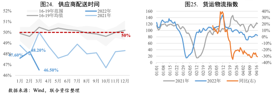 物流不暢、運力不足疊加成本上行,物流行業(yè)信用風(fēng)險抬升。3月初本輪疫情爆發(fā)以來,全國多地防疫管控措施升級,道路通行不暢,特別是從上海輻射長三角的跨省物流大通道受阻斷流。物流企業(yè)在本輪疫情沖擊下主要面臨以下三點困難:一是物流不暢。PMI數(shù)據(jù)顯示,3月供應(yīng)商配送時間指數(shù)逆季節(jié)性跌至2020年3月以來的最低點,物流運輸不暢,交貨周期延長;高頻數(shù)據(jù)方面,3月下旬以來,整車貨運流量指數(shù)同比下降超過20%。二是運力不足。受疫情防控影響,很多一線崗位從業(yè)人員或是被隔離、或是被迫就地休息、無法順利上路,造成從業(yè)人員出現(xiàn)短缺,運力供給明顯不足。三是成本壓力上升。成本上升主要系燃油漲價所致,此外還受到人員貨物防疫監(jiān)測、隔離等產(chǎn)生的時間成本和酒店住宿、餐飲費等額外費用上升的影響。總之,本輪疫情以來,物流企業(yè)在業(yè)務(wù)完成量以及收入減少的同時,有形、無形成本都在增加,短期內(nèi)行業(yè)信用風(fēng)險有所上升。