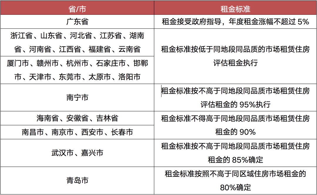 比如上海,對面向社會供應的保障性租賃住房,明確租賃價格應當在同地段同品質市場租賃住房租金的九折以下;面向本園區、本單位、本系統職工定向供應的保障性租賃住房,租賃價格可進一步降低