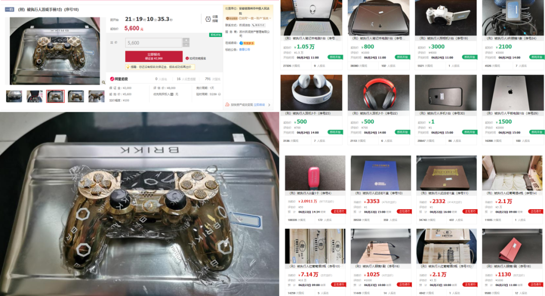 根據(jù)阿里拍賣競(jìng)買公告,張雨杰用“贓款”購(gòu)買的財(cái)產(chǎn)包括海南黃花梨木質(zhì)手串、勞力士、GUCCI、OMEGA共計(jì)8塊手表、3支DIOR眼鏡、拉菲酒莊干紅葡萄酒1982等10瓶極具收藏價(jià)值的紅葡萄酒、紀(jì)念鈔等,但最能突出其個(gè)性的還是一干電子產(chǎn)品。包括BRIKK鍍金鑲鉆游戲手柄、五億限定版PS4 Pro主機(jī)、《戰(zhàn)神4》限定版PS4 Pro主機(jī),3臺(tái)Switch主機(jī)、4臺(tái)外星人電腦、大量索尼、beats的耳機(jī)和蘋果的4臺(tái)平板電腦、2臺(tái)筆記本電腦、11部手機(jī)……