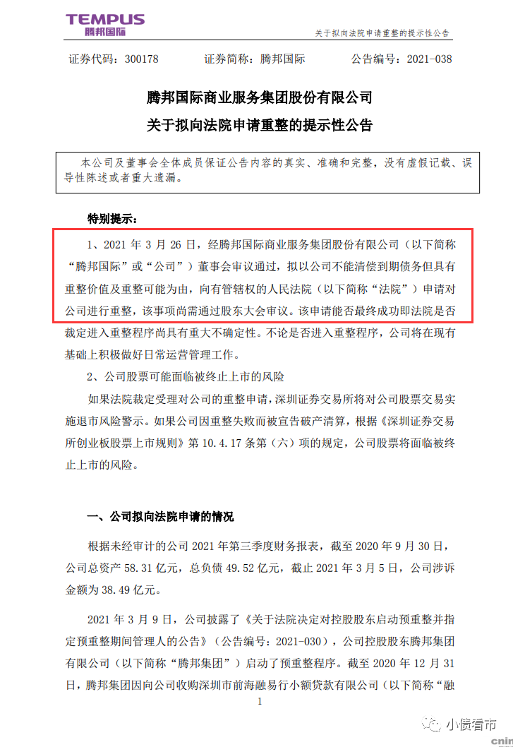 值得注意的是,目前騰邦國際的控股股東騰邦集團已啟動預重整程序。