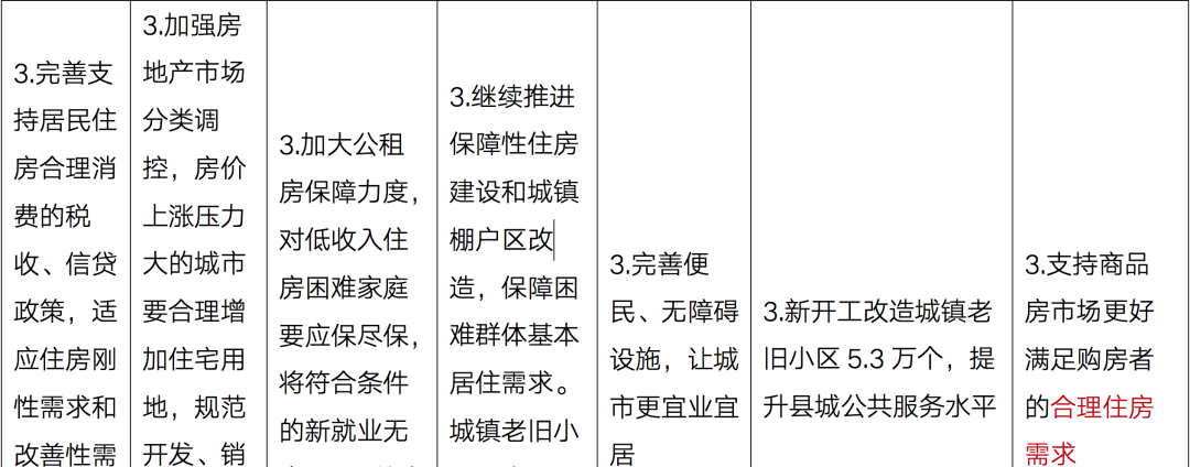 今年的政府工作報(bào)告關(guān)于房地產(chǎn)的內(nèi)容延續(xù)了去年末以來(lái)的政策口徑,相較于往年新增了“良性循環(huán)”和“支持商品房市場(chǎng)更好滿(mǎn)足購(gòu)房者的合理住房需求”的表述,同時(shí)政府工作報(bào)告中并未提及房地產(chǎn)稅,重點(diǎn)城市試點(diǎn)工作或?qū)⑾蚝笱悠凇?/p>