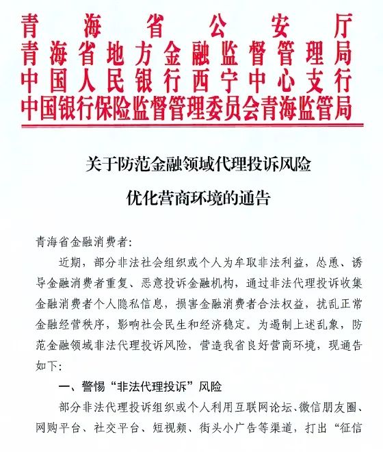 去年以來,銀保監會,中銀協,以及北京、湖南、廣東、青海等多個地方金融監管部門還專門針對金融領域的“非法代理投訴”發文,直指其危害性,要求金融機構們防范風險,重拳打擊違法行為。此外,如前文所及,人行上海總部也專門發出關于防范“征信修復”、“征信洗白”騙局的風險提示。