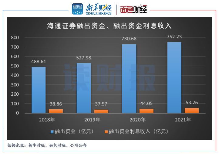 2021年,海通證券融出資金導致的信用減值損失為4.85億元,同比下降52.63%,是當期公司信用減值損失金額總體減少的主要原因。當期期末,公司融出資金為752.23億元,同比微增近3%。