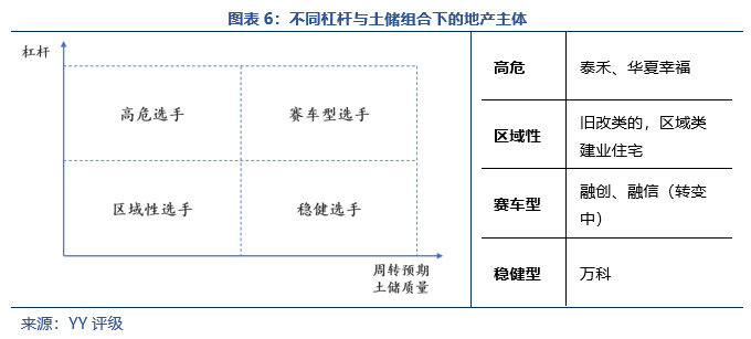 回歸地產的本源,此前的邏輯圍繞在土儲、杠桿兩大角度。未來而言,土儲決定了其安全厚度;杠桿決定了目前的生死時速,類似于土儲是汽車的底盤,杠桿是目前速度。