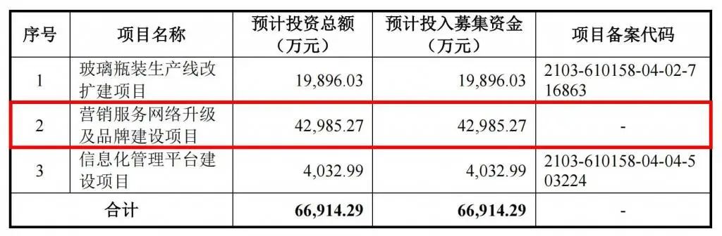 招股書顯示,冰峰飲料擬將1.99億元用于玻璃瓶裝生產線改擴建項目,占比29.73%;4.3億元用于營銷服務網絡升級、品牌建設項目,占比64.24%。