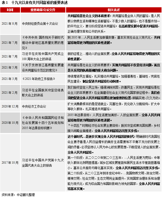 核心觀點:共同富裕目標將成為今后我國深化改革的重要方向,可重點關注后續在收入分配,特別是再分配和三次分配上的配套措施。