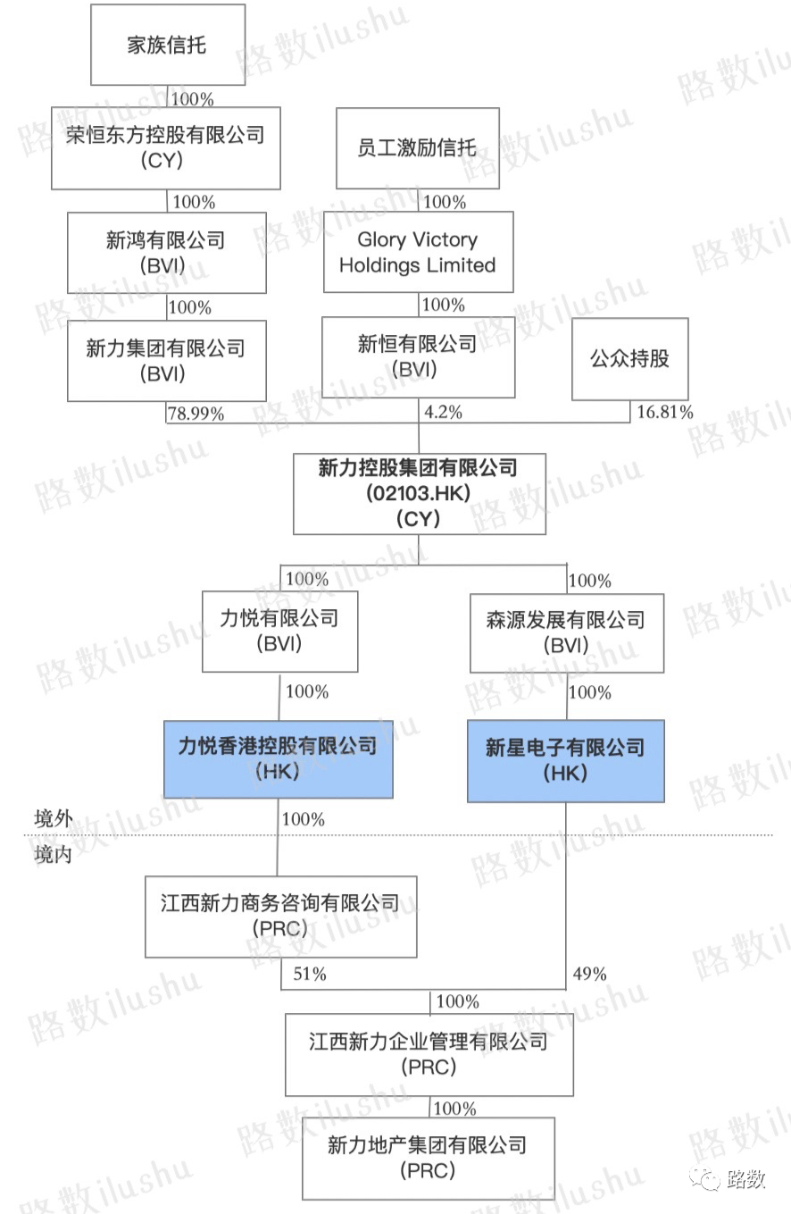 被接管的力悅香港持有新力境內(nèi)運(yùn)營主體——新力地產(chǎn)集團(tuán)有限公司的51%股權(quán)。新力地產(chǎn)集團(tuán)有限公司剩余的49%股權(quán)則由新星電子有限公司(Icons Electronics Limited)持有。▼